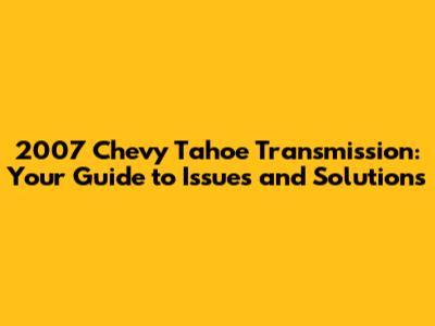 2007 Chevy Tahoe Transmission: Issues & Fixes