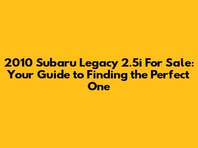 Finding the Best Deals on a 2010 Subaru Legacy 2.5i