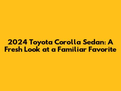Hey everyone! Let's dive into the 2024 Toyota Corolla Sedan, a car that's been a staple on roads worldwide for generations. This year, Toyota's given the Corolla a little refresh, and we're here to break down all the juicy details. From updated features to what makes this car a consistently great choice, we'll cover it all. So, buckle up, and let's explore what the 2024 Corolla has to offer!