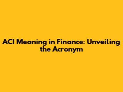 ACI Meaning In Finance: Unveiling The Acronym