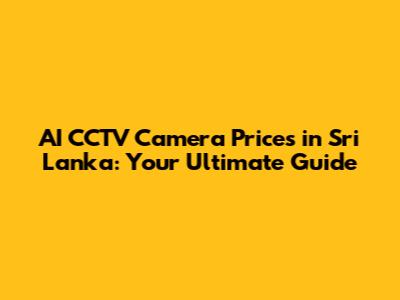 AI CCTV Camera Prices In Sri Lanka: Your Guide
