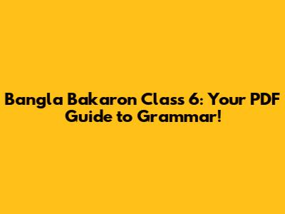 Bangla Bakaron Class 6: Your PDF Guide To Grammar!