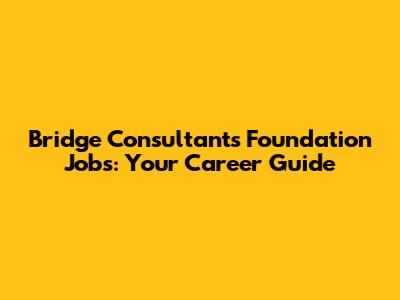Bridge Consultants Foundation Jobs: Your Career Guide