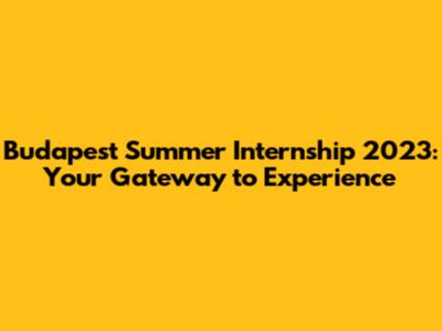 Budapest Summer Internship 2023: Your Gateway To Experience