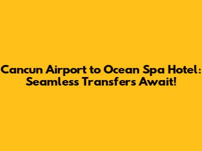 Q: How long does it take to get from Cancun Airport to the Ocean Spa Hotel? A: Typically, the transfer takes between 30 to 45 minutes, depending on traffic conditions and whether you're on a shared shuttle with multiple stops or a direct private transfer. The Ocean Spa Hotel is located in the Hotel Zone, making it a relatively short drive from the airport.