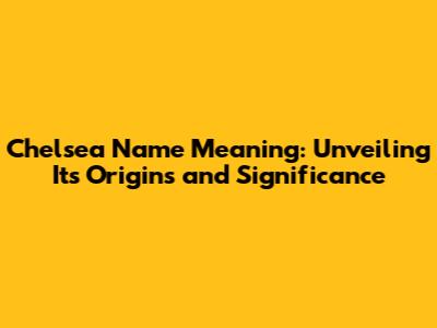 Chelsea Name Meaning: Origins, Popularity, And More