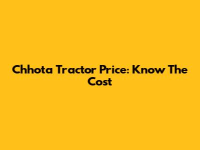 Chhota Tractor Price: Know The Cost