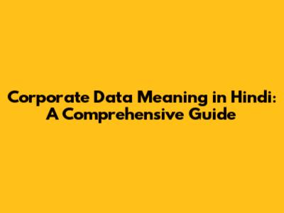 Corporate Data Explained: Hindi Meaning & Key Concepts