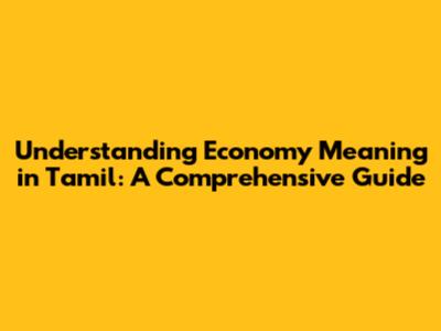 Economy Meaning In Tamil: Examples And Explanation