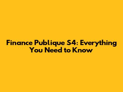 Finance Publique S4: Everything You Need To Know