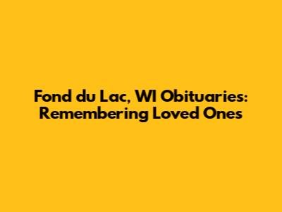 Fond Du Lac, WI Obituaries: Remembering Loved Ones