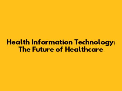 Health Information Technology: The Future Of Healthcare
