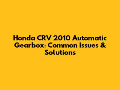 Honda CRV 2010 Automatic Gearbox: Common Issues & Solutions