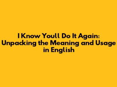 I Know You'll Do It Again: Understanding The Phrase In English
