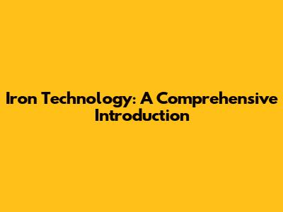 Iron Technology: A Comprehensive Introduction
