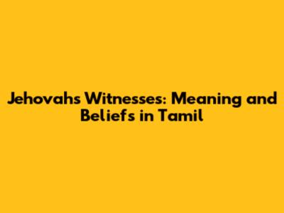 Jehovah's Witnesses: Meaning And Beliefs In Tamil