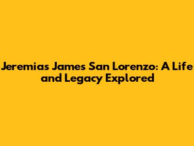 Jeremias James San Lorenzo: A Life And Legacy Explored