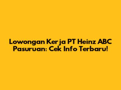 Hey guys! Lagi cari lowongan kerja terbaru di Pasuruan? Nah, kebetulan banget nih, kita bakal bahas info lowongan kerja PT Heinz ABC Pasuruan yang pastinya sayang banget kalau kalian lewatkan. Yuk, simak terus artikel ini sampai selesai!