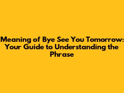Meaning Of 'Bye See You Tomorrow': Understanding The Phrase