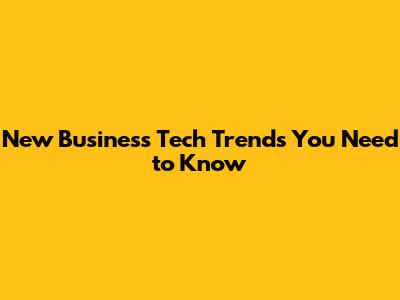 New Business Tech Trends You Need To Know