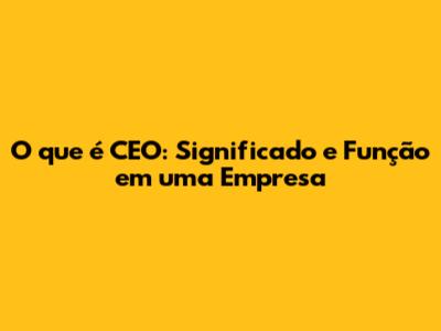 O Que É CEO: Significado E Função Em Uma Empresa