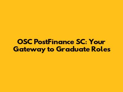 OSC PostFinance SC: Your Gateway To Graduate Roles