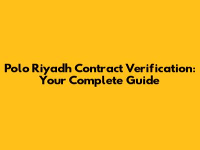 Polo Riyadh Contract Verification: A Comprehensive Guide