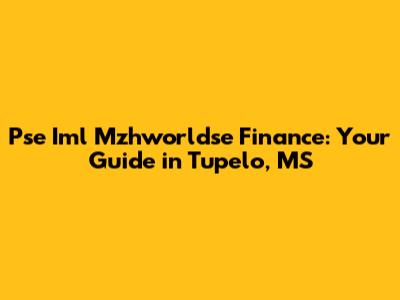 Pse Iml Mzhworldse Finance: Your Guide In Tupelo, MS
