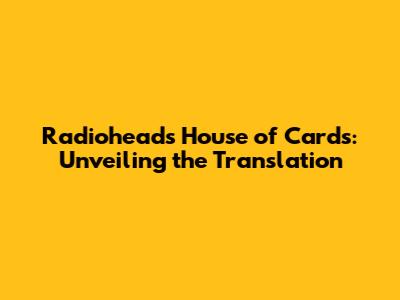 Radiohead's House Of Cards: Unveiling The Translation