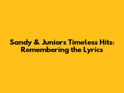 Sandy & Junior's Timeless Hits: Remembering The Lyrics