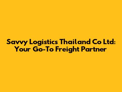 Savvy Logistics Thailand: Your Go-To Freight Partner