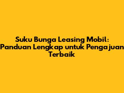 Suku bunga leasing mobil adalah elemen kunci yang mempengaruhi biaya total kepemilikan mobil Anda. Dengan memahami dasar-dasar suku bunga, faktor-faktor yang mempengaruhinya, dan strategi untuk mendapatkan penawaran terbaik, Anda dapat membuat keputusan yang lebih cerdas dan menguntungkan. Jangan lupa untuk membandingkan penawaran dari berbagai perusahaan leasing, memperbaiki skor kredit Anda, dan bernegosiasi untuk mendapatkan suku bunga yang lebih rendah.