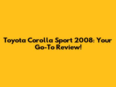 Toyota Corolla Sport 2008: Your Go-To Review!