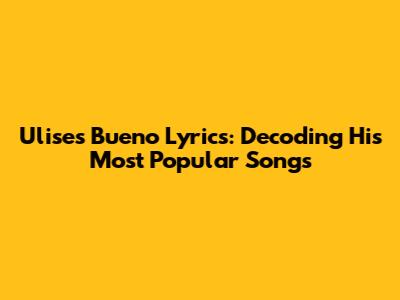 Ulises Bueno Lyrics: Decoding His Most Popular Songs