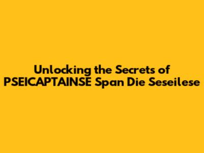 Unlocking The Secrets Of PSEICAPTAINSE Span Die Seseilese