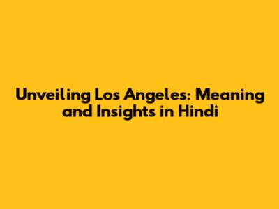 Unveiling Los Angeles: Meaning And Insights In Hindi
