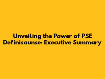 Unveiling The Power Of PSE Definisaunse: Executive Summary