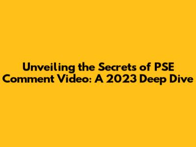 Unveiling The Secrets Of PSE Comment Video: A 2023 Deep Dive